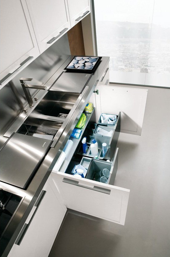 Inoltre, le cucini moderne componibili offrono un assoluto vantaggio in termini di spazio.